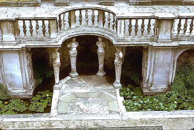 The Duke of Urbino justifying himself by the vastness of the horizons which he thus seems to rule. The Renaissance prince dips into Nature. Why gardens in particular? A garden can be modeled, it can be manufactured; a garden is thus a form of nature on which man can have an impact. Man sculpts Nature: Man is nearly God's peer. When the Renaissance princes ordered a waterfall here, a mountain there andfacing perspectives, they felt a bit like Jupiter thundering from the top ofthe Sistine Chapel, or, if you prefer, they felt like God the father. We are in an era in which the Prince and God were like twins. The garden was thus a spot which the princes valued highly. A garden offers an adventure, a garden tells a story. This story is highlighted by important moments, in which the genius of science and the marvels of Nature were able to come together. A grotto dedicated to Vulcan allowed a Renaissance prince to exult.