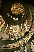The most brilliant part is the architecture at the top of the work, which is completely due to Bramante. These are exactly the same coffers as the ones which Bramante was raising in the new Saint Peter's Basilica, which was then taking form.