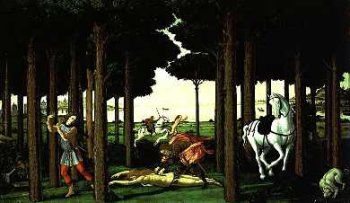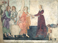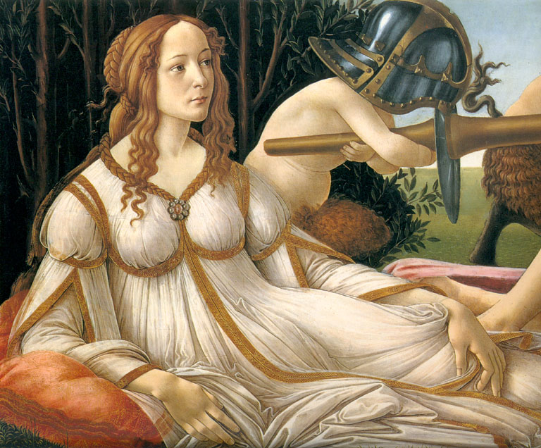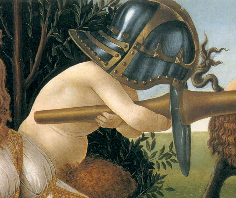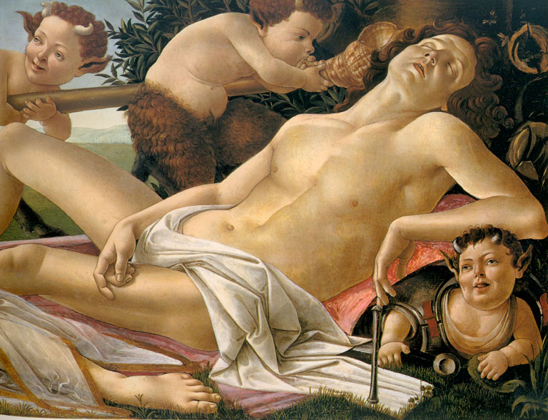 Leaving these paintings which represent one of the heights of Botticelli's profane painting, we hope that we have succeeded in demonstrating the extent to which it responds to an iconographic program, the extent to which this program is a myth and the extent to which the myth is meant to educate us about the primacy of sacred love over profane love. It is paramount to be aware of this, as we can already note that in the Christian paintings, Botticelli never even tries to educate. On the other hand, in the pagan paintings, from Mars and Venus on and mostly with the Birth of Venus and Spring, we can see that there is an attempt at education. It is rather extraordinary to realize that Botticelli is more at ease in this mythical didactic role with the "pagan" gods than with his perennial Christianity.