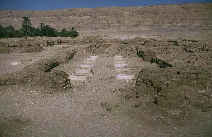 The foundations for most of the buildings listed in the royal text have been identified, in particular the Great Temple (House of the Aten) and the Smaller Temple (Mansion of the Aten) of the Aten, the vast palace onto the back of which were built the administrative buildings, the House of the King or Little Palace, the Apartment of the Queen. Above all, an eight hundred meter stretch of the royal street that ran through the center of the city has been cleared. Beyond this stretched the leisure quarters, the homes of the high-ranking officials, and further to the north, the suburbs, a complex mosaic of tightly grouped, small houses.