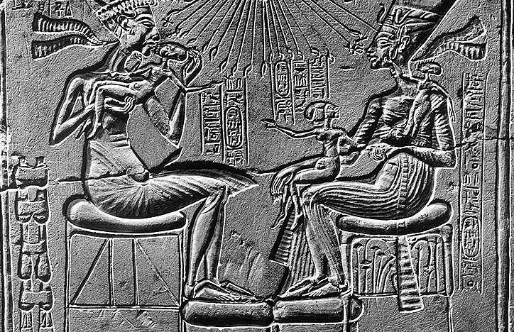 18th Dynasty - The royal family being blessed by the Aten - Limestone - H 0.332 - Berlin, Ägyptisches Museum - This stela undoubtedly belonged to one of Akhenaten's domestic altars
