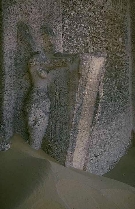 Ninetheenth-century travellers, mostly monks, hardly ever stopped over there. The French draftsman Nestor L'Hôte (1828 expedition under Champollion and 10 years later on his own account) was content to sketch several of the Boundary Stelae